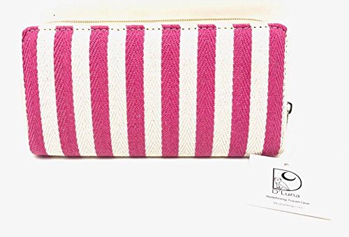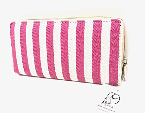 -. Binding : Apparel -. Brand : D'Luna -. Department : womens -. Feature : D'LUNA WOMEN'S WALLET: Striped Canvas Fabric Wallet / Zip Around Closure with Inner Zip Pocket for coins, plenty of space for cards and cash / FASHION: Classic timeless design that is fun and modern / TRAVEL: Carry your essentials safely and securely / Measures 7 x 3.5 inches -. ProductGroup : Apparel -. ProductTypeName : ACCESSORY -. Size : 7x4 inches -. Title : D'Luna Womens Wallet Striped Canvas Ladies Clutch Zip Around Travel