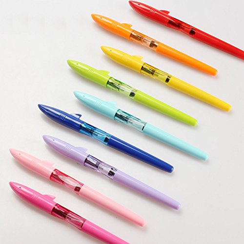 -. Feature : Material: plastic. diversity color,shark shape / Package : 4 x fountain pens(with removable converter) / Capped length: 160mm, diameter: 10mm, pen weight: 25g / Cap : screw type / Pen does NOT come with ink!
