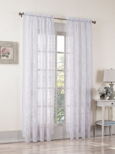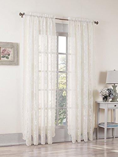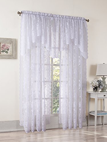 Alison is an elegant jacquard lace curtain panel with an attractive scalloped bottom and edges for a delicate look. A traditional sheer panel with an available valance top treatment.
