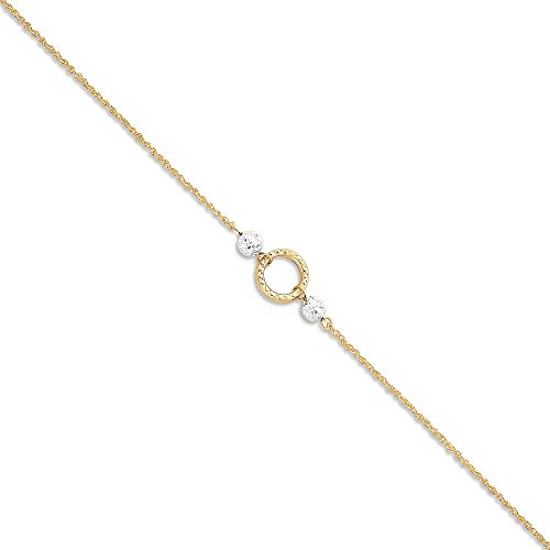 -. Title : ICE CARATS 14k Two Tone Yellow Gold Circle Bead 9 Inch 1 Adjustable Chain Plus Size Extender Anklet Ankle Beach Bracelet Fine Jewelry Gift For Women Heart