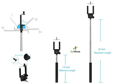FULLY ADJUSTABLE EXTENSION 11" - 36": Adjust the length of the selfie stick to get the perfect shot. Use a short length for intimate shots and a longer length to cram in more people or background. The clamps are adjustable to fit the desired angle for each shoot. Shooting different angles for photos and videos has never been as much fun and easy! Adjustable ball head and thumb screw locks for multiple angle shooting with 180 degree position.