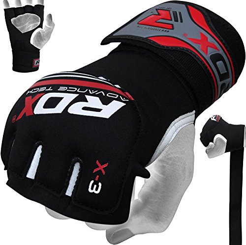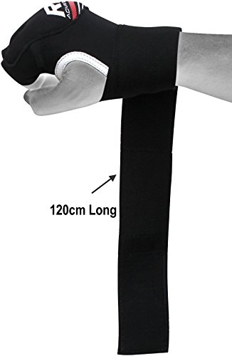-. Feature : Interior gel padding provides exceptional impact absorption around knuckle area / Added dexterity with fully adjustable double length hook/loop closure wrist strap provides additional support to wrists for better punching form / The lightweight, form-fitting neoprene material prevents hand cramping. Hand washable / Fabric prevents odour causing bacteria from thriving / Hand-wrap glove can be worn under glove for added overall protection