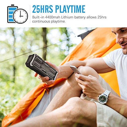 -. Feature : SOUND BEYOND SIZE: Don't let your eyes deceive you! This portable speaker delivers two 10W drivers and one passive radiator which provide full-spectrum audio with incredible bass effect and clarity at any listening level. Enjoy LIVE music anytime, anywhere you go! / 25HRS PLAY TIME: The rechargeable 4400 mAh lithium-ion battery delivers up to 25 hours of playtime, and charges with most USB power sources. Be prepared to be impressed by the power of this Pictek speaker! / Engineered To Travel: Don't leave your music behind. Enjoy wireless freedom with this little speaker. Weighing in at just 24.5ounce, it's small and light enough to tuck into your bag. It has a hook that lets you place it almost anywhere and provides a low center of gravity that makes it nearly impossible to tip over. / IPX4 Waterproof Rating: What could be more fun than bring a waterproof speaker to a party at the beach? Waterproof rated IPX4 for protection against rainfall and splashing. It can protect your speaker from water jets at any direction. / Hear What You Want: Advanced Bluetooth 4.0 technology features faster & stable signal transmission, clearer sound quality and lower power consumption. You can enjoy clear, natural sound from this durable speaker within 33ft wirelessly.