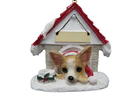 -. Title : Chihuahua Tan and White Ornament A Great Gift For Chihuahua Owners Hand Painted and Easily Personalized "Doghouse Ornament" With Magnetic Back