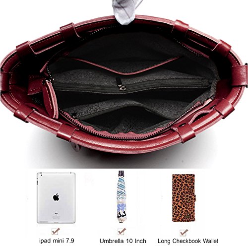 Spacious Room with 2 large compartments + 1 hidden zippered pocket + 1 middle zipped pocket + 1 side pouch + 1 outside zipper pocket for cell phone, ipad mini, small umbrella under 10 inch, charger, makeup, gadgets, car keys, wallets and other essentials