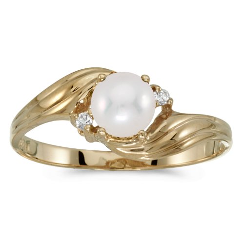-. Title : 10k Yellow Gold Pearl And Diamond Ring
