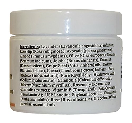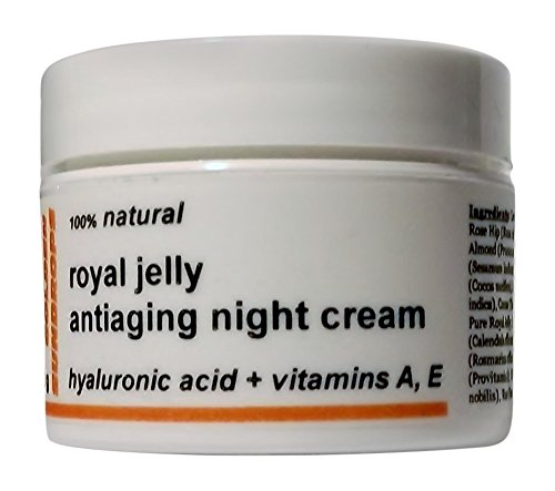 -. Feature : Highly concentrated Royal Jelly Antiaging Night Cream - 1.5oz / 42g. This cream recipe is based on the BEST HERBAL TRADITIONS and MODERN SCIENTIFIC KNOWLEDGE from around the world. This HIGH-POTENCY ANTIAGING NIGHT CREAM is FORMULATED for DRY, COMBINATION DRY, AGING, IRRITATED, SENSETIVE SKIN. Ingredients are 100% NATURAL, ORGANIC, CERTIFIED ORGANIC - TRUE BLESSING FOR YOUR HEALTHY, RADIANT SKIN. / This HIGHLY CONCENTRATED CREAM is ENRICHED with PURE ROYAL JELLY ( POWERFUL NUTRIENT, contains a FULL RANGE of AMINO-ACIDS, MINERALS, ENZYMES and VITAMING A, B, C, and E ), HYALURONIC ACID ( the MOST POWERFUL MOISTURIZER and HUMECTANT KNOWN SO FAR ), ANTIOXIDANT VITAMIN E, PROVITAMIN A ( known for its SKIN-HEALING PROPERTIES ), ROSE HIP OIL and KOKUM BUTTER ( known for their SKIN REGENERATING PROPERTIES ). / NOURISHES the SKIN at a deep CELLULAR LEVEL with POWERFUL ANTIAGING INGREDIENTS and PROVIDES ANTIOXIDANT PROTECTION. / HELPS to RESTORE your SKIN'S NATURAL MOISTURE BALANCE and DECREASE the APPEARANCE of FINE LINES and WRINKLES. / 100% CHEMICAL FREE FORMULA, CONTAINS NO CHEMICAL PRESEVATIVES, ADDITIVES, SULFATES, PARABENS, PHTHALATES, PETROCHEMICALS, OR ARTIFICIAL FRAGRANCES THAT COULD IRRITATE AND DAMAGE THE SKIN.