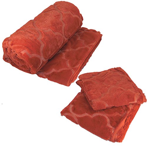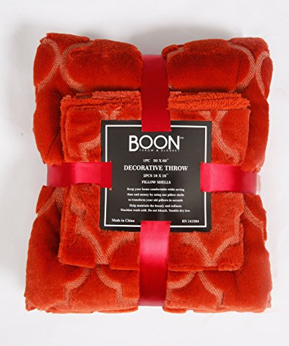 BOON Ogee Tatami Faux Fur Throw Blanket with Pillow Shell Set, 50" x 60" , Burnt Orange