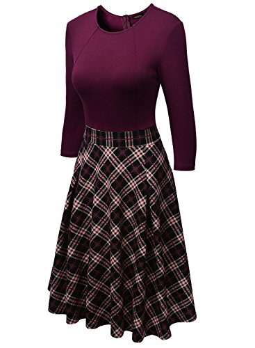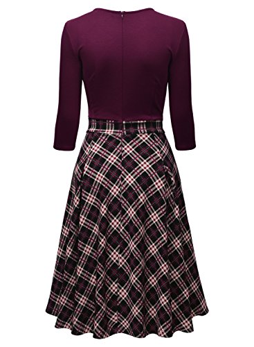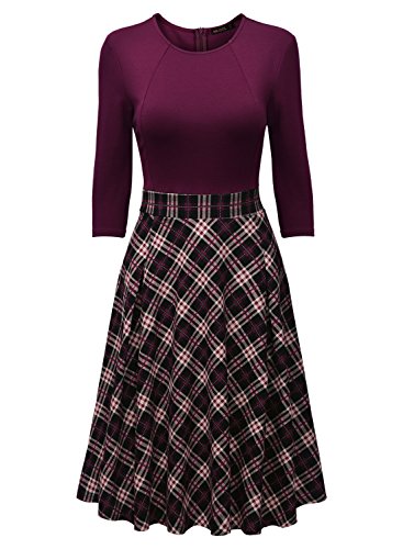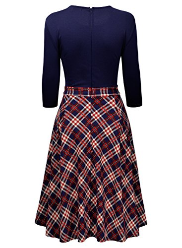 -. Binding : Apparel -. Brand : MissMay -. Department : womens -. Feature : Plain Scoop Neck,3/4 Sleeve,High Stretch,Size Runs Big / Plaid Pattern Checkered Design / Slimming Fitted Top with High Waist / This classic can't be missed in your wardrobe / Knee Length,Zip to Center Back -. Model : GHA-3302ZIHONG01 -. ProductGroup : Apparel -. ProductTypeName : DRESS -. Title : Missmay® Women's Vintage Retro Plaid Patchwork A-line Cocktail Party Dress