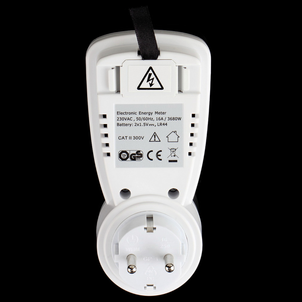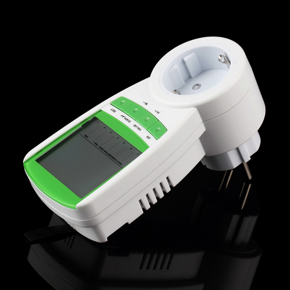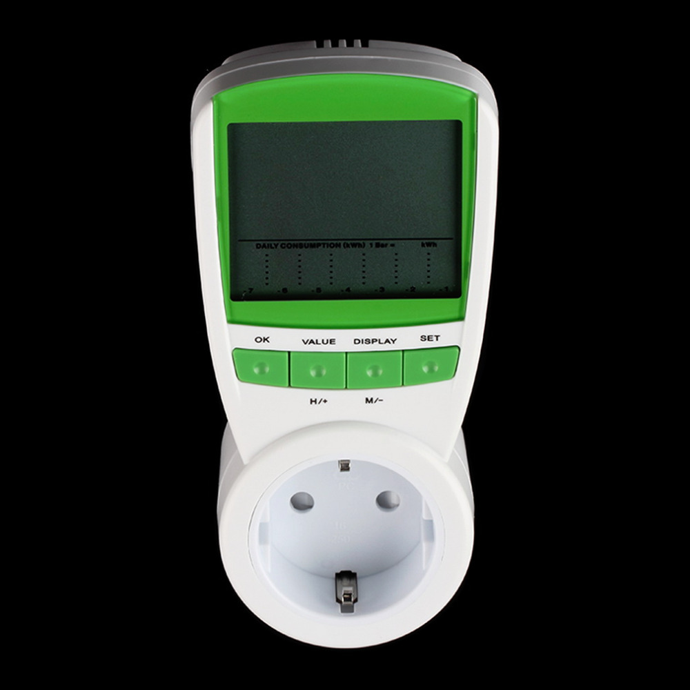 | Features: 100% brand new and high quality! LCD digital display for the values of the readings time and costs. Basic functions: clock voltage current power factor operate time power consumption display overload alarm settings price setting automatic calculation of electricity. So many display modes transferred easily by pressing "DISPLAY". Overload warning displayed on LCD screen when the appliance exceeds the setting value. Resetting for abnormal display. Easy electricity price setting good for energy-efficient living. Specifications: Color: White Material: ABS Plug Standard: EU US UK(Dear buyer:please leave a message to tell us which Plug Standard you want. Otherwise we will send EU Plug. Thank you!) Operating Voltage: 230V 50Hz Max Operating Current: 16A Min Operating Current: 0.005A Voltage Range: 190V to 270V Duration of Indication: 0 second to 9999 hours 59 minutes Power Range: 1W to 3680W Current Range: 0.01A to 19.999A Frequency Display: 0Hz to 9999Hz Resolution: 0.5W Indication of Frequency: 46Hz to 65Hz Measurement of Consumption: 0.00KWH to 9999.99/KWH Product size: 23.5 * 6.5 * 3.5cm / 9.25 * 2.56 * 1.37in (L * W * H) Net Weight: 170g Package includes: 1 * Power Meter |