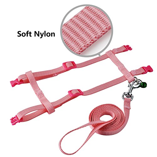 PerSuper-Soft Mesh Small Pet Harness Leash with Safe Bell, No Pull Comfort Padded Vest Durable Nylon Harness Adjustable All Season for bearded dragon,Guinea Pig,Ferrets,Rabbits,Cats