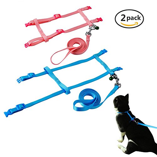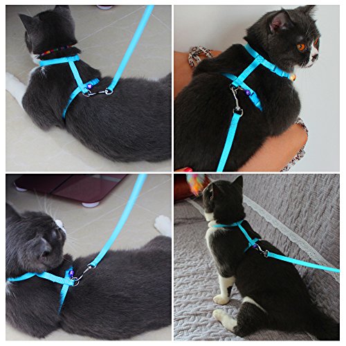 - ★Leash is 47.2 inches, neck girth 7-10.2 inches, breast girth is 7.8-11.8 is inches. Cat leash and harness - Loss prevention,when your pet running around you, there's always the sound of a bell.The color of the bell is random.