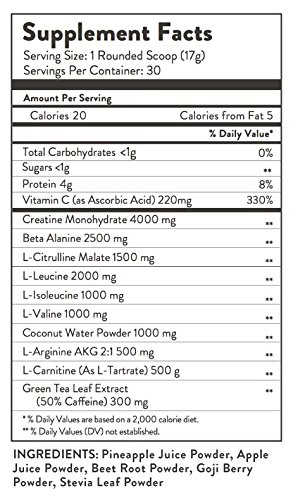 -. Title : Pure WOD Clean Pre Workout Supplement for CrossFit, Paleo, Caffeine from Green Tea, Includes BCAA, Creatine, Arginine, Carnitine, Citrulline, Coconut Water, Beta Alanine
