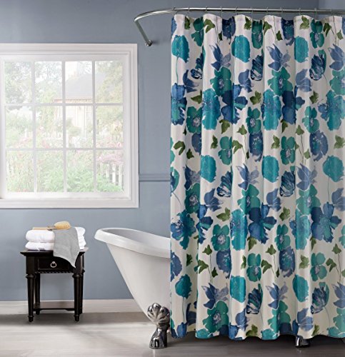 13Piece Set with Lurex Shower Curtain & 12 Metal Hooks Floral Spring