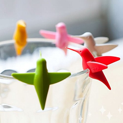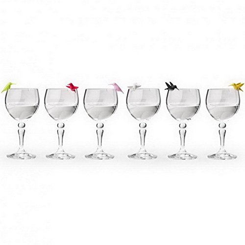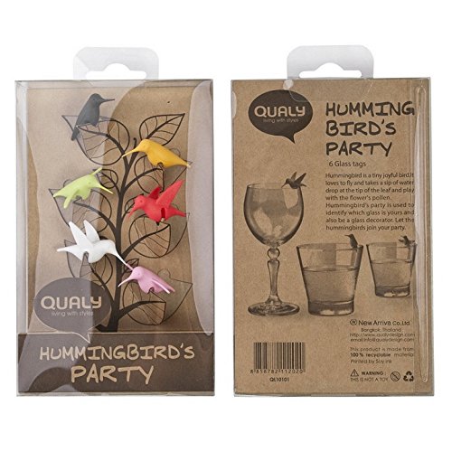 -. Title : Wine Charms Hummingbird Glass Marker by Qualy Design Studio. Set of 6 Unusual Wine Glass Identifiers. Multicolor. Unique Bird Wine Glass Markers.