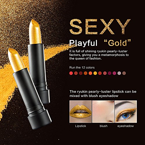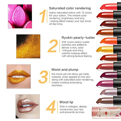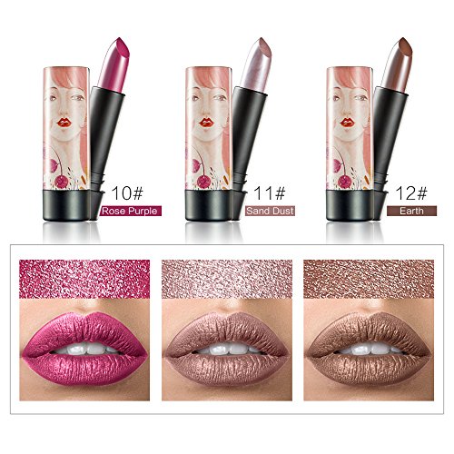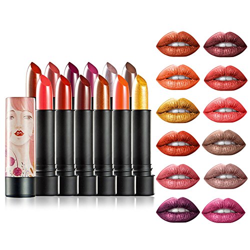 -. Title : HUAMIANLI 12pcs Metallic Glitter Lipsticks Set Metal Shimmer Cream Matte Lip Stick Waterproof Long Lasting