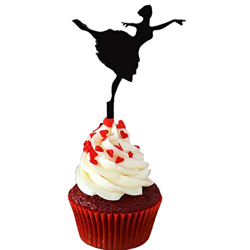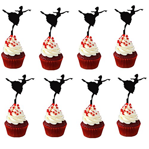 Ecape Cupcake Toppers Lovely Ballet Dancer Cupcake Picks for Party Cupcake Decorating 8 Pcs a Set Black Acrylic (Dancer2)