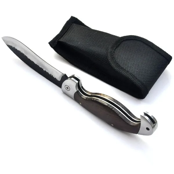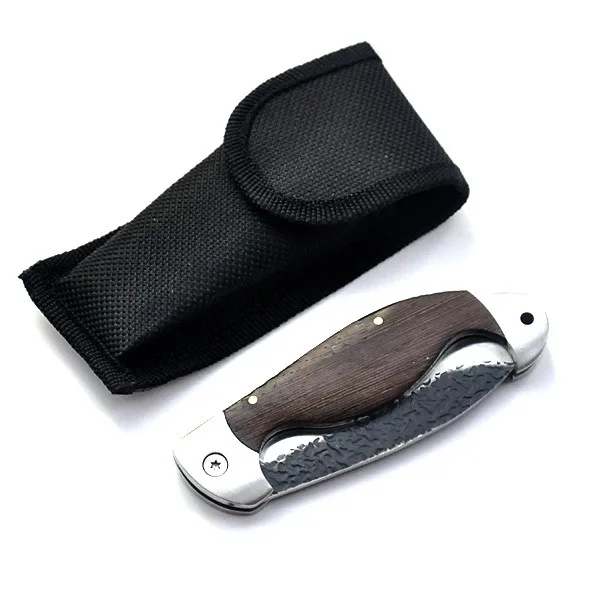 | [해외] 야외 접는 칼 스틸 블레이드 나무 핸들 전술 포켓 생존 나이프 Huntting 낚시 EDC 도구 나일론 칼집 |