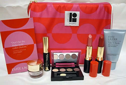-. Feature : Set Includes: / Estee Luader Resilience Lift Eye Cream 0.17oz/5ml, Take It Away Makeup Remover Lotion 1oz/30ml / Candy (shimmer) and Scarlet Siren (Creme) Full Size .13oz/3.8g each. / Pure Color 4 Color Eye shadow Palette (10 Ivory Slipper,13 Tranquil moon, 12 Wild Truffle, 14 Provocative Plum) .01oz/.35g each / Sumptuous Bold Volume Lifting Mascara 2.8ml, Pink P.R.Int Lisa Perry cosmetics bag