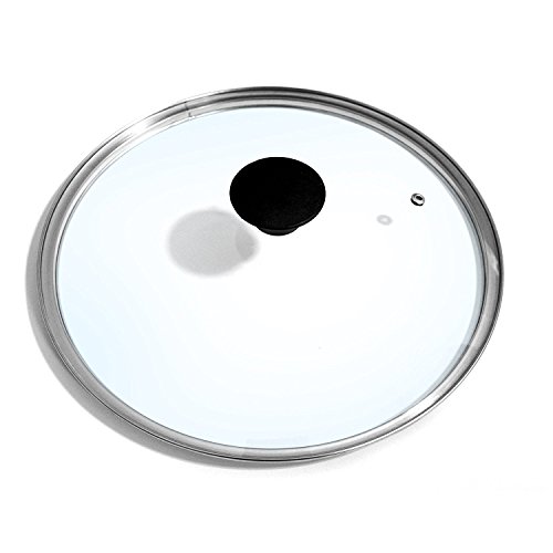 The Cook N Home 12-inch/30cm Tempered Glass Lid is made of tempered glass to view food easily. The lid is protected by a stainless steel rim. Steam-release vent for moisture control. The lid fits 12-inch pots and pans and is dishwasher safe.