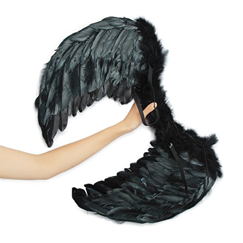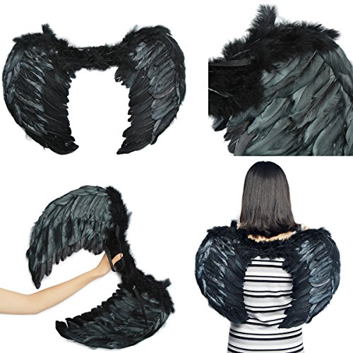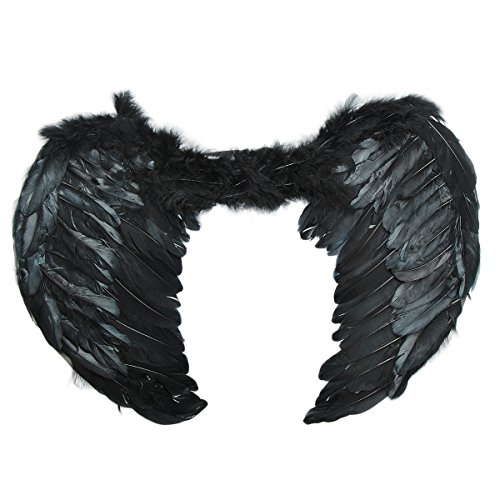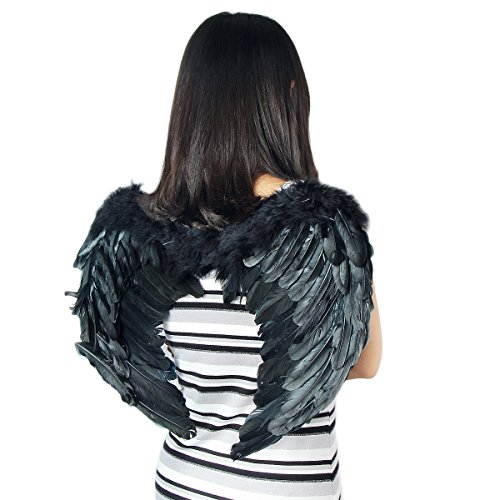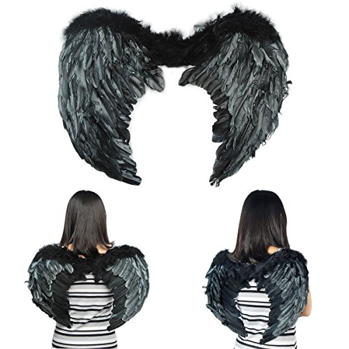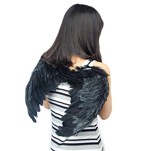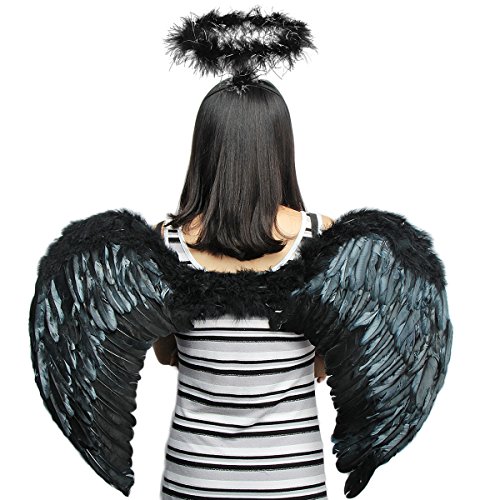 -. Brand : Tongyin -. Color : Black -. Feature : Fast shipping & USA Stock / Perfect for Costume and Theme Parties / Elastic straps for Easy Wearability / Approximate Wingspan (from left to right) about 50cm across in open, Approximate Wing Height (from top to bottom) 40cm / Package included:1*feahter wing, 1* Angel Halo Headband -. ProductGroup : Apparel -. ProductTypeName : CHILDRENS_COSTUME -. Title : Black Angel Feather Wings Costume