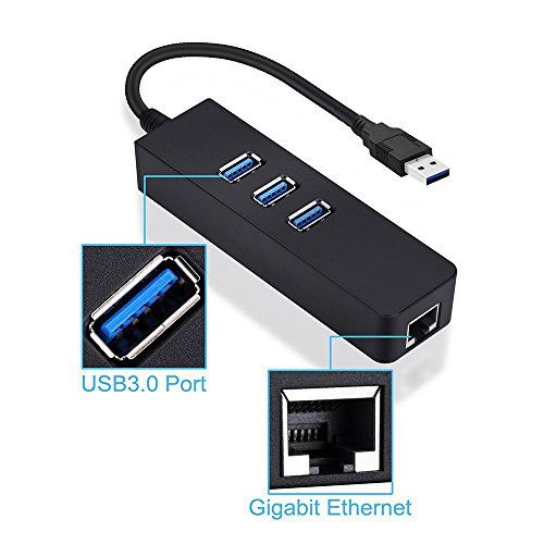 Top-Longer 3-Port Portable USB 3.0 HUB with RJ45 10/100/1000 Gigabit Ethernet LAN Wired Network Adapter Converter for Windows, Mac OS 10.10.x and Linux