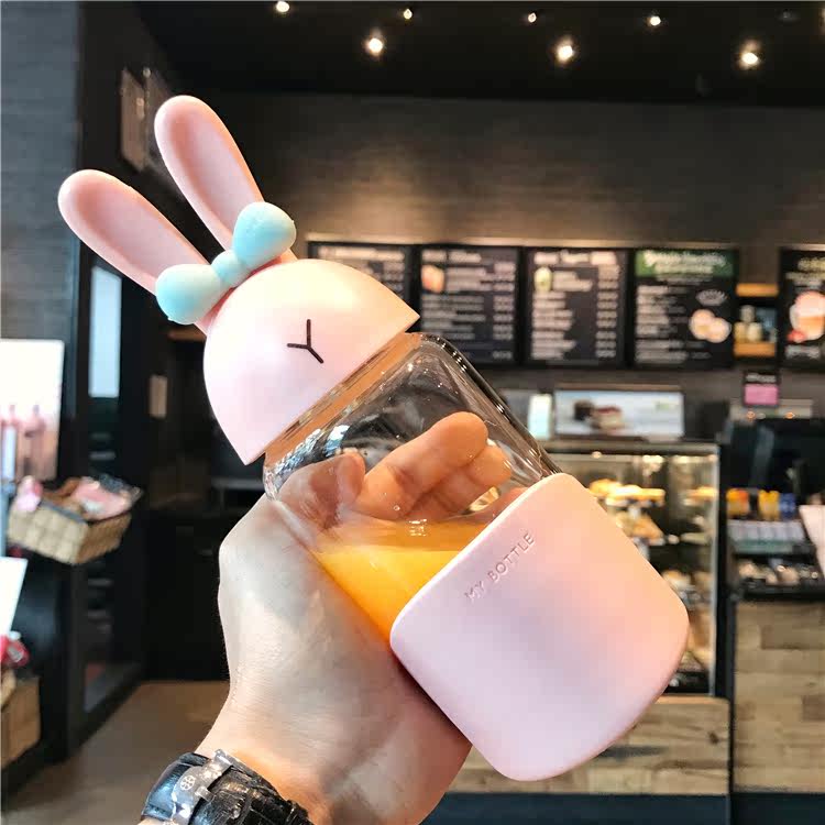 韩版可爱清新卡通超萌兔子玻璃杯学生情侣男女便携创意随手水杯子