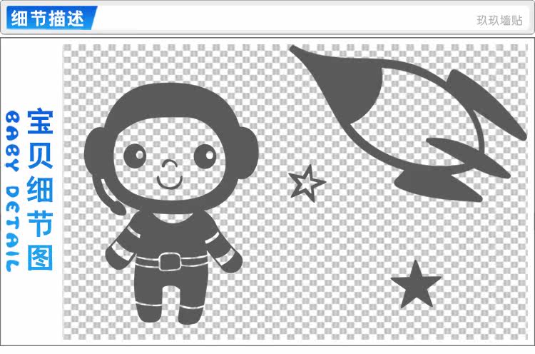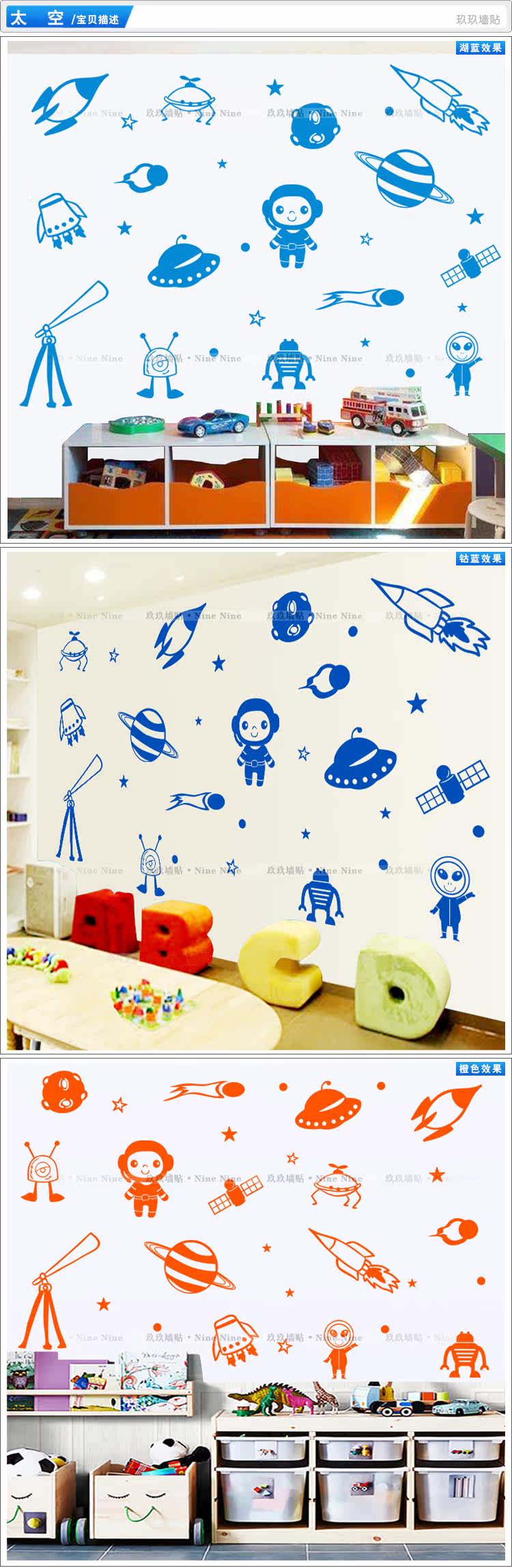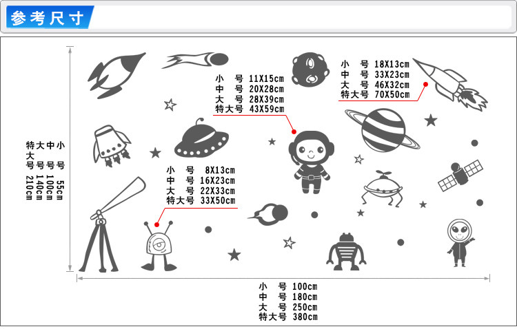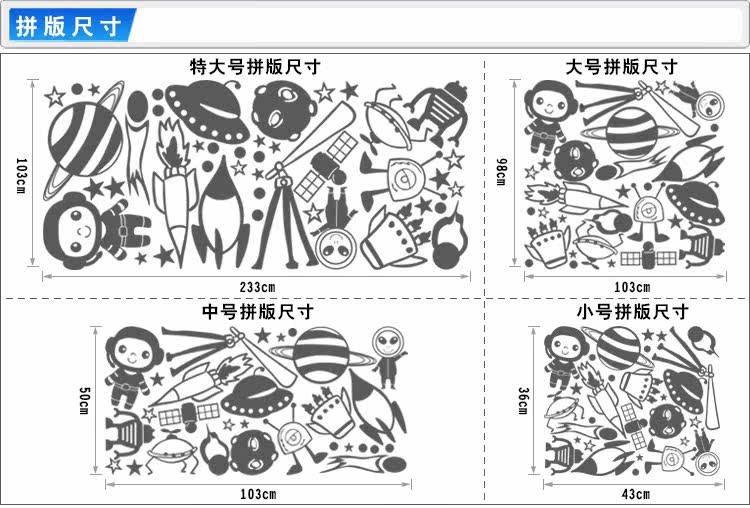 幼儿园儿童娱乐城墙面装饰墙贴太空宇宙飞船外星人火箭贴纸贴画