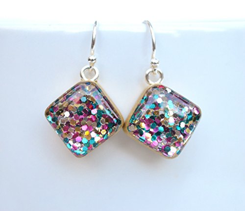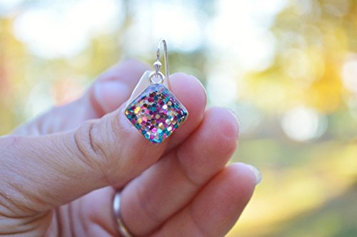 -. Title : Rainbow square sparkle drop earrings. Rainbow glitter dangle earrings. Square glitter earrings. Hypoallergenic.
