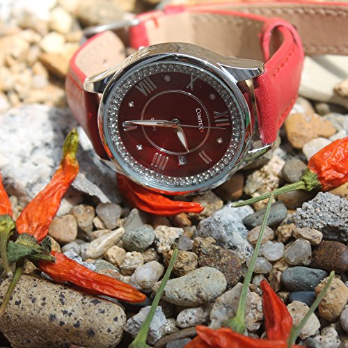 Comtex 레이디스 손목시계 와인 레드 밴드 문자판 캘린더 표시 쿼츠 시계