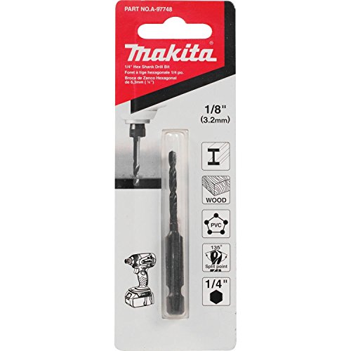Makita A-97748 1/8" Black Oxide Drill Bit, 1/4" Hex Shank