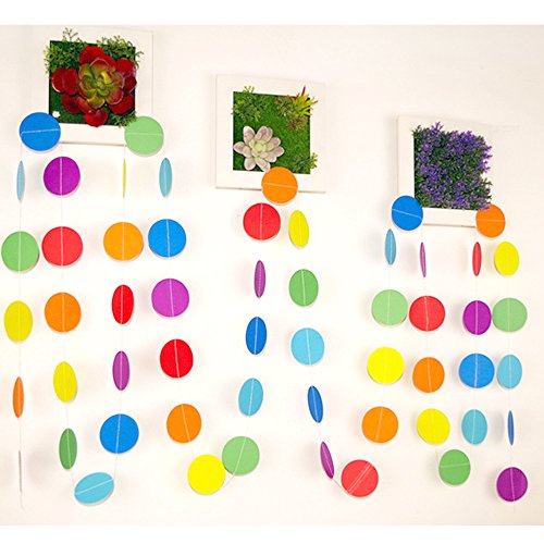 Studio : Coceca20170518 Publisher : Coceca20170518 Binding : Toy Product Description Super-value Set of 66ft long Circle Dot Colorful Paper Garland (5 Packs, 13.1ft per pack) Each pack is 4M/13.1ft long. Color: blue, orange, yellow, purple, pink and green. Each garland has rich mixed colors, very good-looking. The garland is made of eco-friendly hardboard material and does not do any harm to the children. Our garlands are very versatile and eco-friendly, and will not do any harm to kids even for the baby's birthday party. You can hang the garland on the ceiling and pull to the edge to form into a flower pattern, and our amount is absolutely enough. You can also put it up and hang as a background for birthday cake, or door entrance, etc. Or as home decoration, such as pulling together with the curtains to form the arc shape which is very nice, or as a small curtain after you trim to the length you want, and the children will be very fond of them. They are very nice to hang even in the office, to reduce the serious atmosphere in it, and to add some pleasant feeling, so that your employees feel the passion of work. Add them to cart now! 0