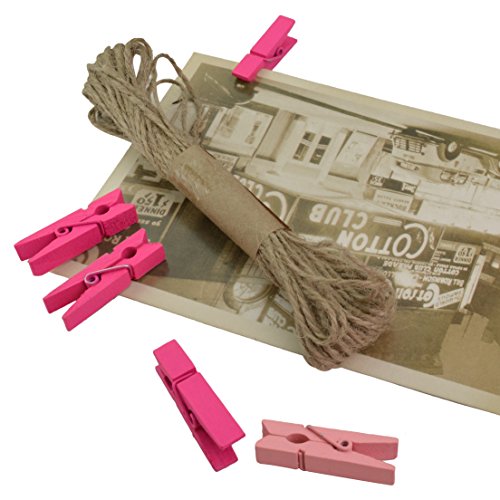 - NATURAL WOOD AND TWINE: These clips are made of matural wood and sprayed with coated paint; Equiped with natural color 10 meters jute twines, nice and durable. And these clips can be resuable, meet your daily need.