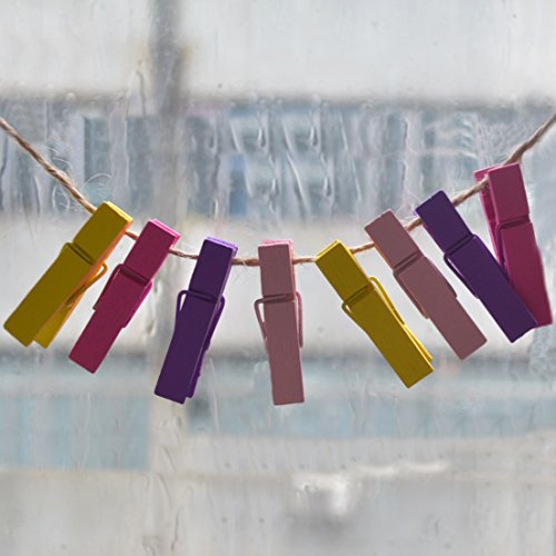 - PRODUCT DETAILS: Package include 100pcs wooden clips + 10 meters Natural Jute Twines;Each clothespin measures 1.25 inches. The clips will be shipped at random color.