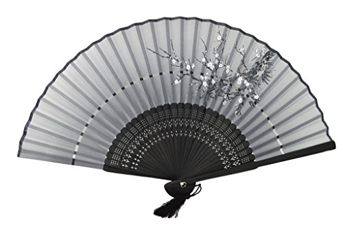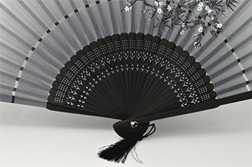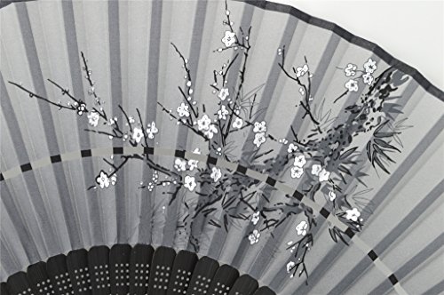 TANG DYNASTY(TM) japanese Silk Handheld Fan Hand Fan Black Wintersweet Jhf-002