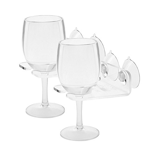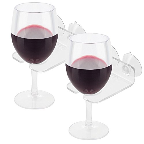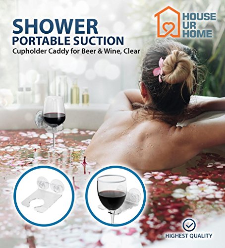 Bathtub Wine Glass Cupholder. Caddy Shower & Relax Bath With Powerful Strong Suction Cups , Set Of (2) Clear Acrylic. By House Ur Home