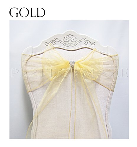-. Title : Perfectmaze 10 Piece 8" x 108" (Inch) Organza Chair Sash Bow Cover for Wedding, Party, Engagements, Formal Events Decoration_Gold
