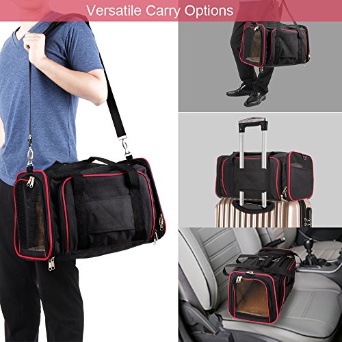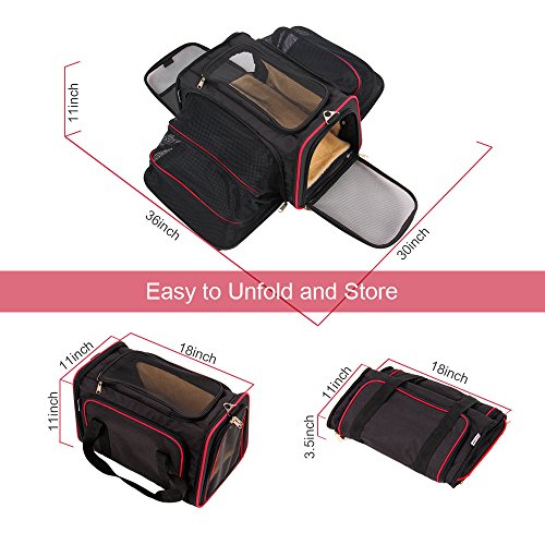 KiddyWoof PRESENTS, THE MOST INNOVATIVE AIRLINE APPROVED CAT CARRIER IN AMAZON ROCKS! Are you ready for your next worry-less pet travel? When traveling with a pet, maximum comfort and safety is essential in a travel small cat carrier. The KiddyWoof Small Pet Travel Carrier offers small dogs and cats that comfort and fits under most airline seats to keep your pet close by as you travel. 2 SIDES EXPANDABLE DESIGN Our pet carrier bag can create more room for your pet and more freely air circulation. Expand one side or both, the additional patio space also becomes a play area as well. Let your pet stretch and relax in the portable condo it deserves and no more overheating, anxiety and discomfort. ENHANCED STRUCTURAL DESIGN This small cat carrier made by thick PVC wire frame to hold its stereo shape, never deforming or collapsing down. Zippered top-loading window for easy access to care for and comfort your pet without removal from this dog carrier. AIRLINE FRIENDLY DESIGN The Airline Approved Pet Carrier has adjustable shoulder strap and handle allows you to secure carrier to suitcase for easy mobility while traveling. The expandable space function allows your pet to lay down and relax during your car ride or airplane travels. ATTENTION: 1. This foldable pet carrier is friendly to under seats requirements of major airline carriers. However, please check airline regulations before flying just in case. 2. This pet carrier is built for cats, puppies, rabbits or other small animals up to 18lbs, please measure your pets before purchasing. Ready to travel with this small animal dog carrier? 18 MONTH WARRANTY guaranteed, life time tech support, totally NO RISK order! "Add to Cart" now! 0 |