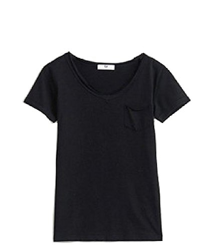 -. Title : 【 Big laugh 】 レディース トップス Tシャツ カットソー 半袖 無地 カジュアル ゆったり 夏 シンプル V ネック ( ブラック , XL )