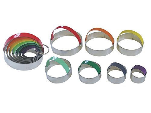 CybrTrayd RM-1717 R&M 7 Size Biscuit Cutter Set with Rainbow Colored Handle, Metallic