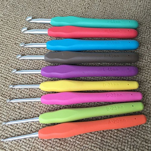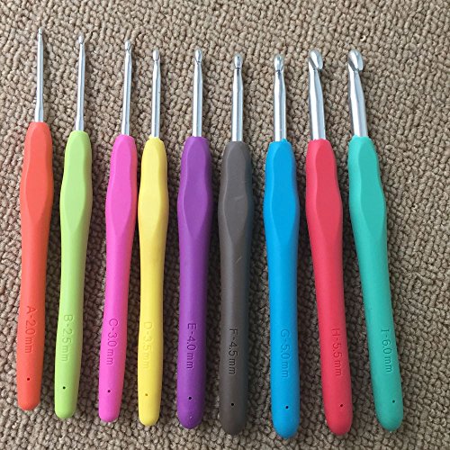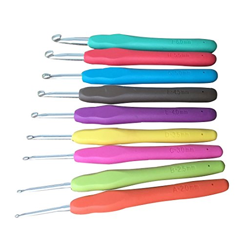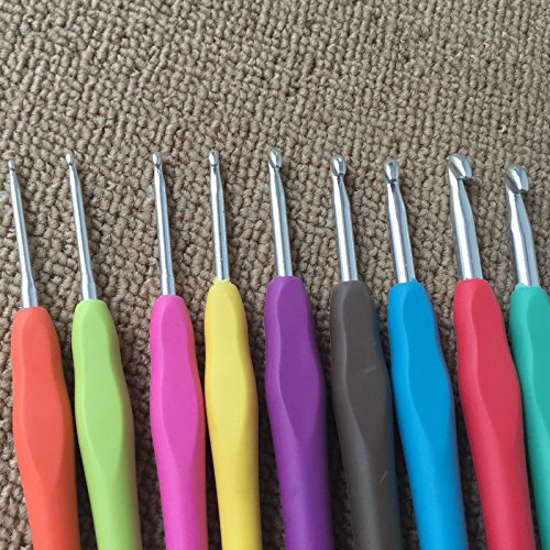 Goswot 9 pcs Crochet Hook Set Ergonomic Antislip Soft Rubber Smooth Aluminium Needles Ergonomic