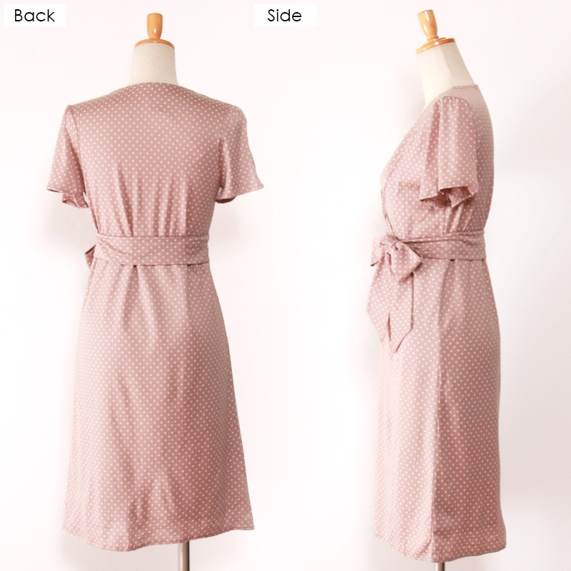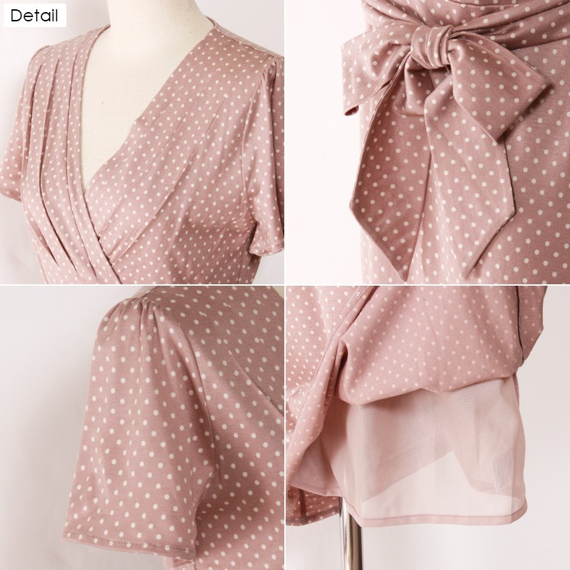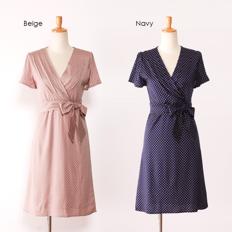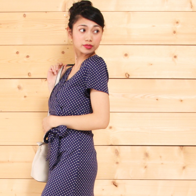 注目のドット柄でレトロに仕上げたワンピース♪ウエストで結ぶリボンがこなれた印象に◎露出しすぎないバランスのとれたデザインで清楚な女性らしさもきっちりアピールできます☆1枚でワンピースとして着用するのはもちろんスキニーデニムでレイヤードしてコーデするのもおすすめです☆Sサイズ Mサイズ