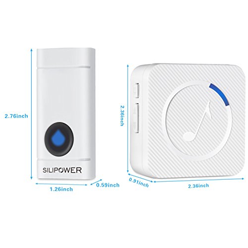 Wireless Doorbell, Silipower Ring Chime Operating over 1000 feet, 1 Waterproof Remote Push Button & 1 Plugin Receiver with LED Indicator, for Home / Office – White
