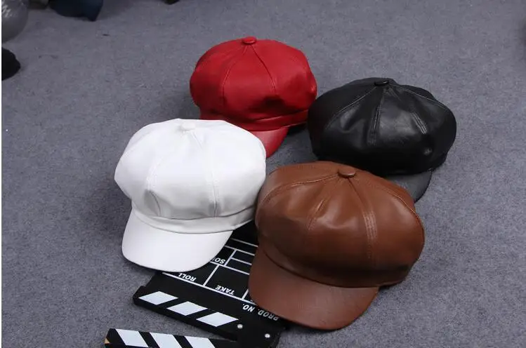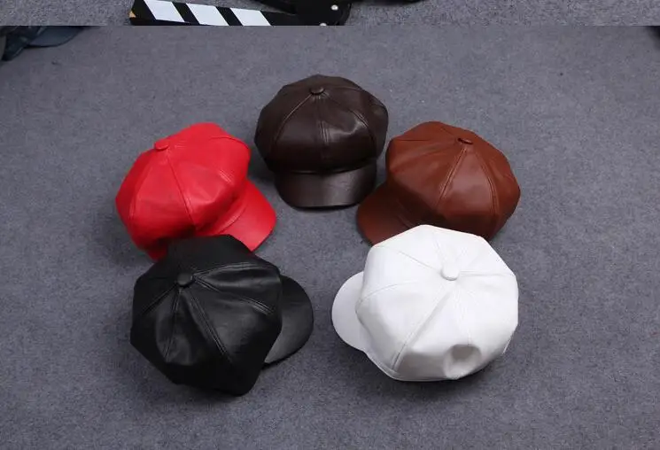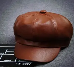 | [해외]2016 패션 쿨 PU 베레모 모자 Gorras Planas 빈티지 가죽 Boinas 캡 겨울 야외 따뜻한 Casquette 모자 |