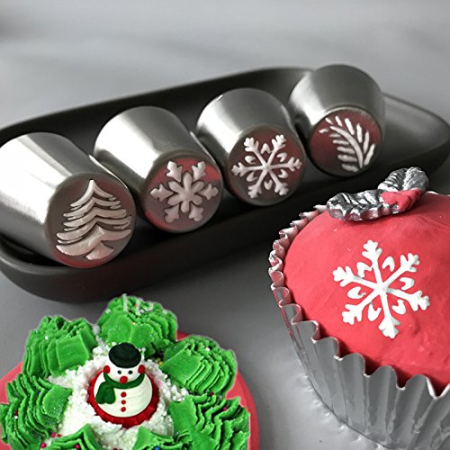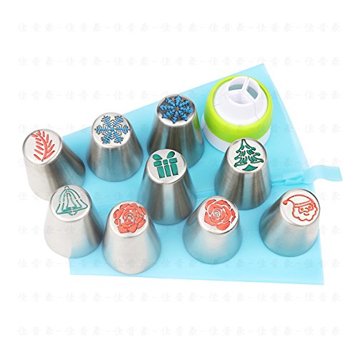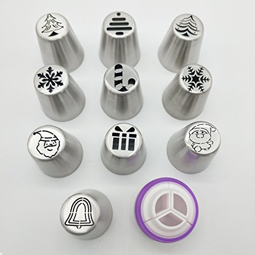 Russian Piping Tips Set Christmas style - 11 pcs Cake Cupcake Decorating Tools Kit - 10 Icing Nozzles 1 Couplers Gift Box