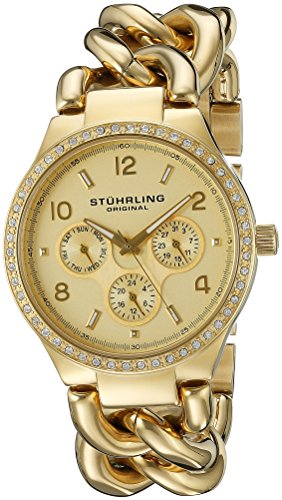 Stuhrling Original Women's 813S.03 Vogue Renoir Day and Date Swarovski Crystal-Accented 23k Gold-Layered Watch