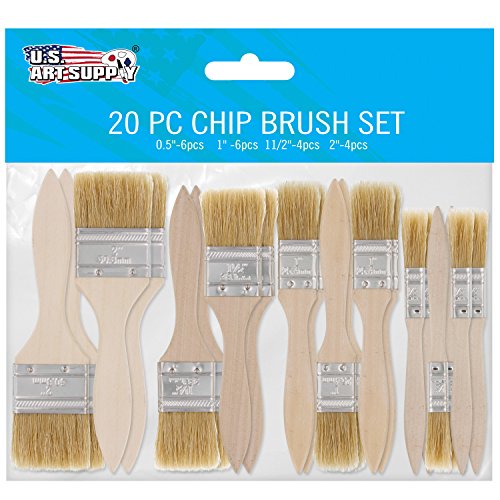 US Art Supply 20 Pack of Assorted Size Paint and Chip Paint Brushes for Paint, Stains, Varnishes, Glues, and Gesso