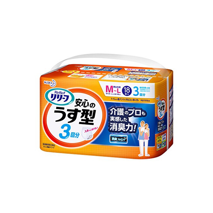 릴리프 팬츠 타입안심 얇은형 M~L 18매【ADL구분:혼자서 걸을 수 있는 분(쪽,편)】
