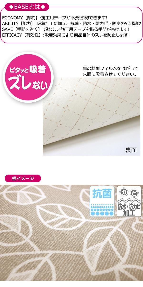 | 施工用テープ不要!!離型フィルムをはがして敷くだけでピタッと吸着し、ズレないので設置がラクラク♪汚れたらサッと拭くだけ!!お手入れも簡単。フローリングの保護にも最適です!! |