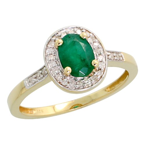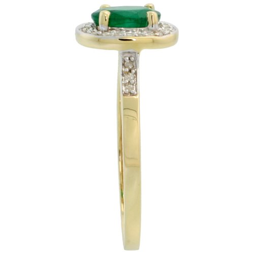 -. Title : 14k Gold Oval-shaped Stone Ring, w/ 0.08 Carat Brilliant Cut Diamonds & 0.85 Carat Oval Cut (7x5mm) Emerald Stone, 3/8 in. (10mm) wide